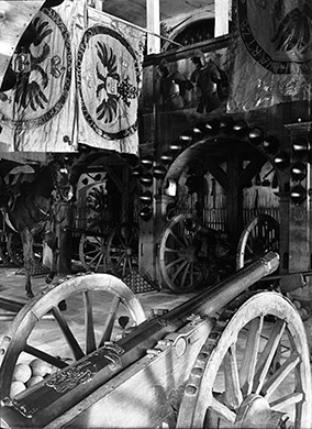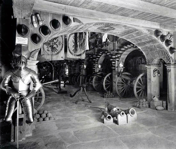 Geschütz von 1522 und Regimentsfahnen - historische Aufnahme des Zeughauses der Schwarzburg Aufnahme: Fotoarchiv Thür. Landesmuseum Heidecksburg