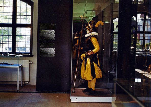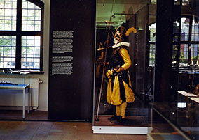 Fußtrabanten-Figur und Nachbildung der Kleidung für die Ausstellung „Churfürstliche Guardie“ Rüstkammer/SKD, Schloss Hartenfels Torgau, Sachsen, 2012, Foto: © Jürgen Karpinski