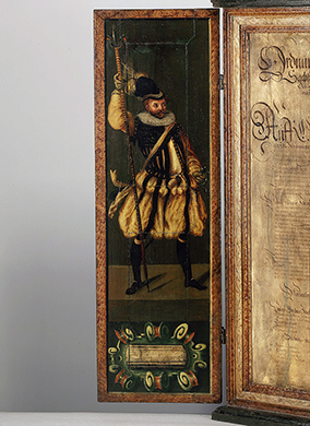 Die Bekleidung der hier gezeigten Figurinen ist eine Annäherung an das Aussehen der kurfürstlich-sächsischen Leibtrabanten in der 2. Hälfte des 16. und des frühen 17. Jahrhunderts.