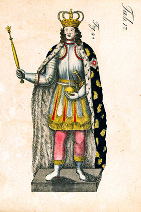 „AUGUST DES STARKEN, KÖNIGS VON POHLEN, KRÖNUNGSORNAT”, in Friedrich Martin Reibisch, Dresden 1826, Lithografie, koloriert, Dresden, RK, SKD, Inv.-Nr. KB200/D
