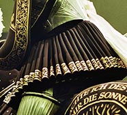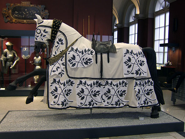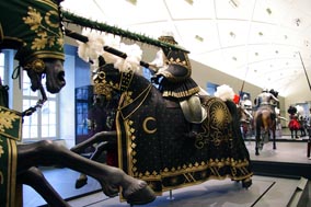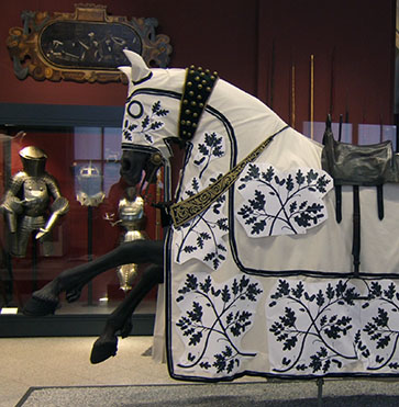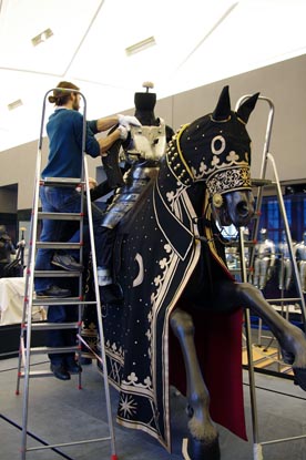 Die Harnische, die Tartschen, Rennstangen, Sporen und Schellen sind originale Objekte aus der Dresdner Rüstkammer. Die Roßdecken, die Zügel- und Schellenbänder, die Rekonstruktionen der Tartschen und die gesamte Kleidung der Reiter wurden in enger Zusammenarbeit mit den Wissenschaftlern und Restauratoren der Rüstkammer in den WERKSTÄTTEN ACKERMANN & PFANNENBERG neu angefertigt.